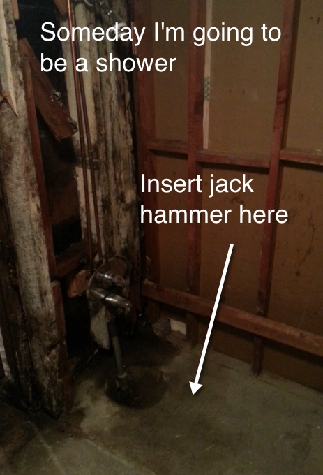 One of the great things about this whole project, though, is that all of my professionals are fully supportive of my ambitious DIY goal, and are willing to teach me what I need to know and step in when the scope calls for it. Take today (over lunch) for example. After looking over a few items in the In Law, my contractor told me she’d be happy to lend me her jack hammer to rip up some concrete. In some places in the world friends or neighbors might borrow sugar. In my world. we lend each other jack hammers! Luckily, I am currently in need of a jack hammer, so this was perfect timing.
