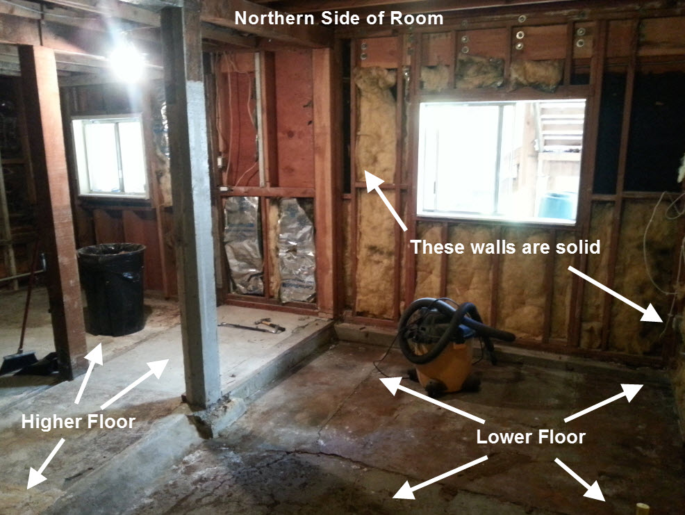 The Northern part of the room is newer construction that is in pretty good shape, however, the floor is significantly lower than the rest of the room: