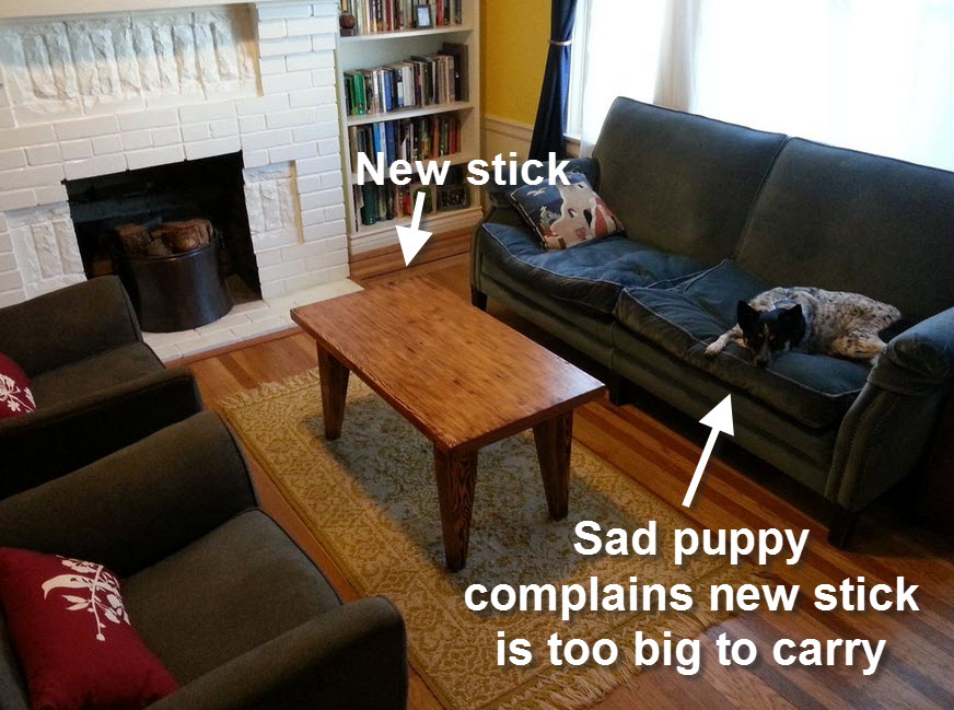 Even for a hardworking maiden in a castle far far away, the application process of stain was what you might expect. Dunk one rag into the stain and spread it around liberally. Then with a dry rag, wipe off all of the excess. Here’s the end result:
