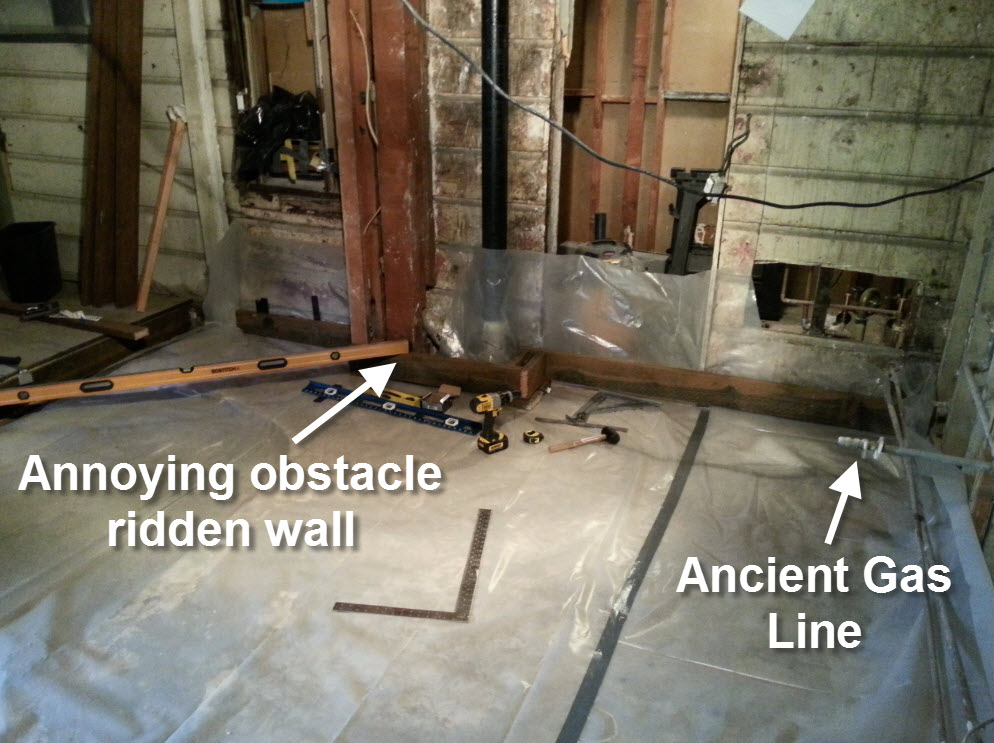 Finally, after opening up the entire floor and having a plumber come in to make the necessary changes, I was left with lovely new plumbing sitting inside a giant chasm. In order to build the subfloor in this room, I need to fill in this giant cavern with concrete.